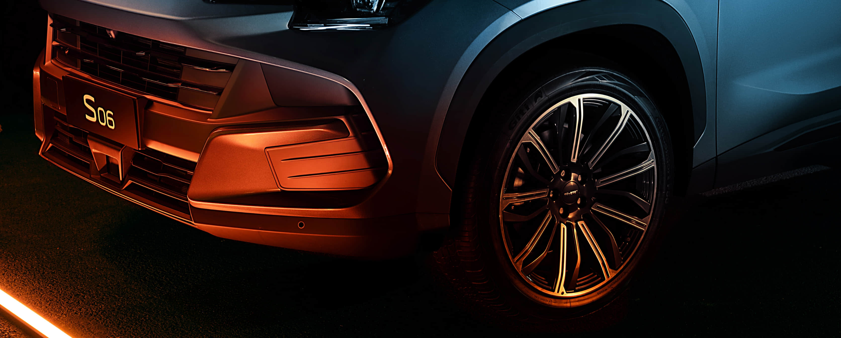 تضيف الأسلاك العريضة إلى التأثير البصري القوي لـسيارة S06. العجلات الأكبر تجعل السيارة تبدو أكثر رياضية.